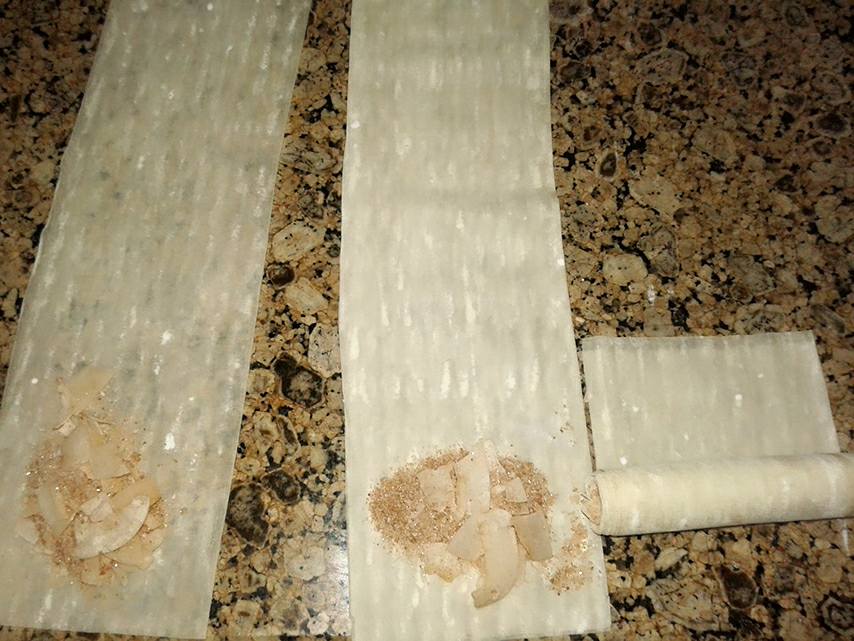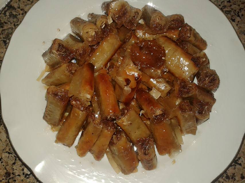 طريقة عمل بقلاوة بالقرفة و جوز الهند بقلاوة بالقرفة وجوز الهند الطريقه كيس جلاش وقرفه وجوز هند تقطعي الجلاش مطول وبعد كده تحشي جوز هند وقرفه وتلفي وتحطي ف الصاج وتحطي 3/4كوب سمن سايحه وتدخل الفرن وأول ما تخرج من الفرن شربات تقيل وبالهنا
