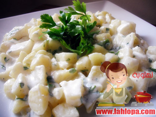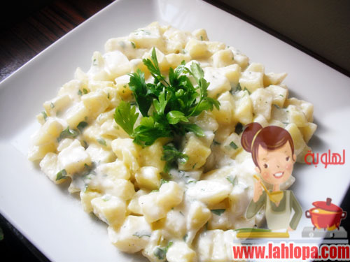 يخلط المايونيز مع الزبادى والملح وعصير الليمون والبقدونس والفلفل ثم يضاف على البطاطاس وتقلب وتقدم
