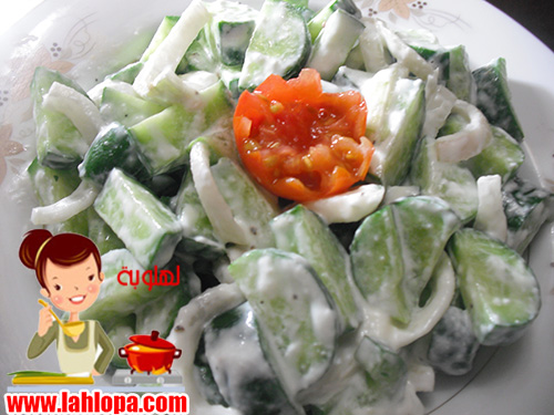 يقطع الخيار انصاف دوائر ويخلط مع البصل ويخلط باقى مكونات الدريسنج ويوضع على الخيار ويقلب