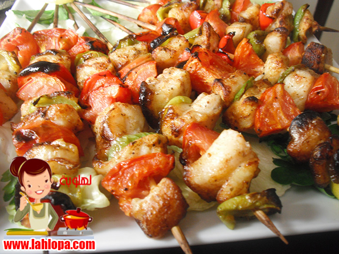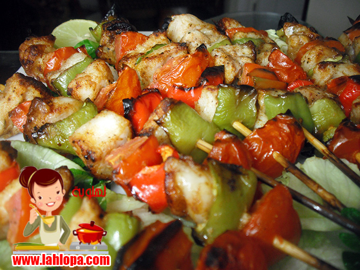 تخلط التتبيلة ويضاف اليها مكعبات السمك وتترك ساعة فى الثلاجة ثم يضاف اليها الخضروات وتقلب حتى تاخد من التتبيلة ثم تشيش فى الاسياخ بالتبادل مع الخضار وتشوى على الشواية او توضع فى صينية وتوضع فى الفرن تحت الشواية وتقلب حتى تستوى بتاخد تقريبا ربع ساعة وممكن فى طاسة على النار مع معلقة زيت وتقلب