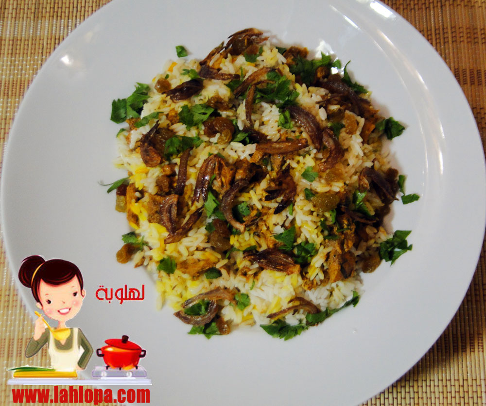 فى حلة نضع جزء من الرز وخلطة الفراخ ثم باقى الرز ونوزع اللون الاصفر او ميه الزعفران ونغطيها تقريبا ربع ساعة على نار هادية جدا ثم يقلب تقلبية ثم يغرف ويزين بالبصل المحمر والزبيب والكزبرة الخضراء