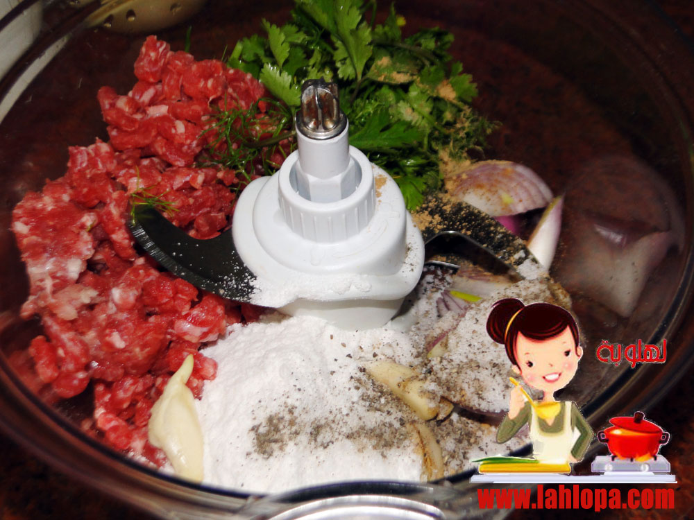 افرمى اللحمة مع البصل واللية والبرغل ثم ضيفى الملح والبهارات