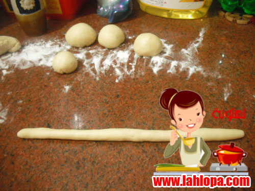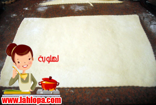 ونضعها فى الطاسة ونفردها بسرعة لكى تأخذ الشكل الدائرى