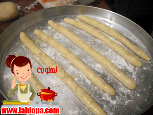 ثم نرفعها من الطاسة ونضع مقدار اخر من العجينة الى ان