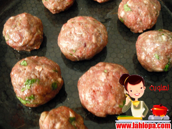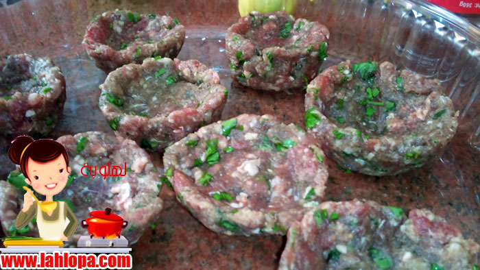 نخلط مكونات الكفتة ونشكلها كورثم نحاول نعملها يعنى زى الاكواب يبقى ليها حواف ثم تدخل فرن تقريبا تلت ساعة