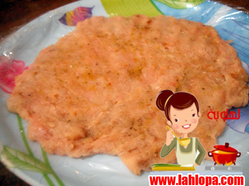 نفرم الصدر مع البصلة والثوم فى الكبة ويضاف الملح والفلفل والبابريكا والنشا وتقلب باليد